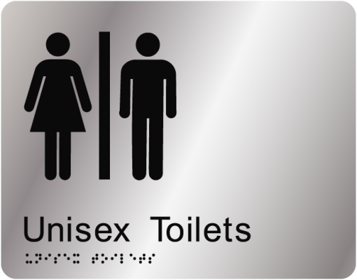 Braille Translation: Airlock - Unisex ToiletsAnodised aluminiumFitted with Double Sided TapeSize: 235 x 180 x 1.6mm