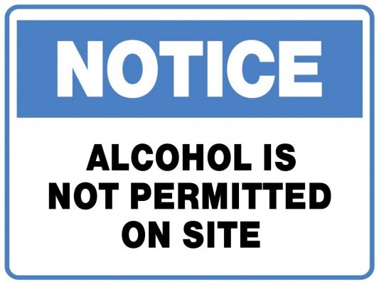 NOTICE ALCOHOL IS NOT PERMITTED ON SITE Product code: 963F4FCD-A04C-3C42-9665-BC977A62