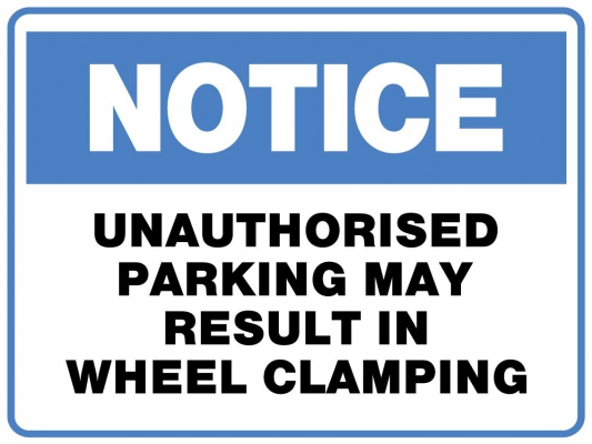 NOTICE UNAUTHORISED PARKING MAY RESULT IN WHEEL CLAMPING Product code: 20F92218-4702-7043-B217-4774AE94